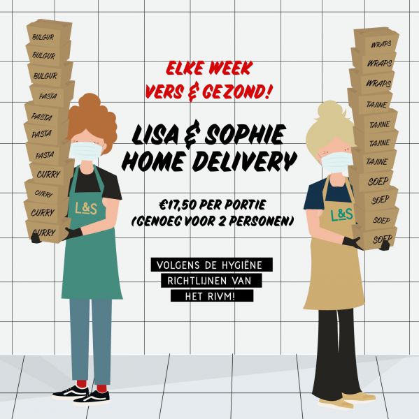 ''Momenteel heb ik zelf niet zo veel klussen. Gelukkig kan ik tot nu toe wel thuis werken, maar ik heb nu ook veel tijd om na te denken. Ik vind het vervelend dat veel zaken door de crisis zwaar zijn getroffen. Ik heb dan nog geluk. De illustratie van het cateringsbredrijf Lisa en Sophie heb ik gemaakt omdat zij vriendinnen van mij zijn. Ze doen nu home deliveries en ik wilde hen een hart onder de riem steken. En Kompaan, dat vind ik gewoon zo’n tof merk. Die wil ik dan gewoon helpen. Dat zij een drive-thru zijn begonnen vind ik zo leuk. Ik krijg dan gewoon de drang om te tekenen. En met die drang kan ik anderen weer helpen.''